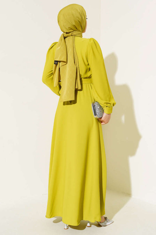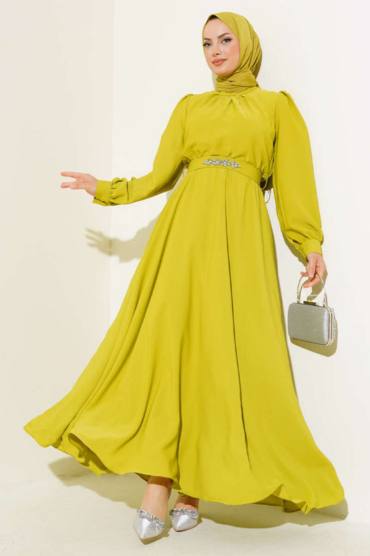 | Name | Robe avec ceinture en pierre, vert pétrole |