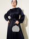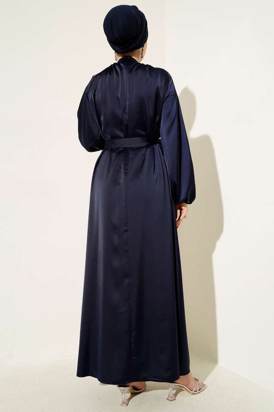 | Name | Robe de soirée en satin à manches ballon et ceinture bleu marine |