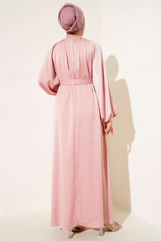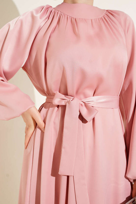 | Name | Robe de soirée en satin à manches ballon et ceinture, couleur poudre |