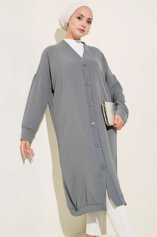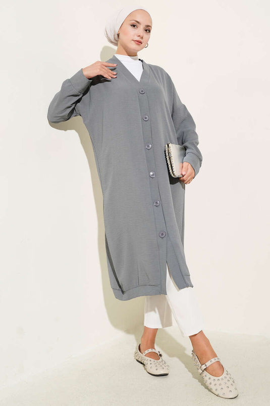 | Name | Cardigan long gris Ayrobin avec boutons sur le devant |