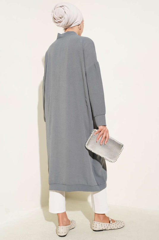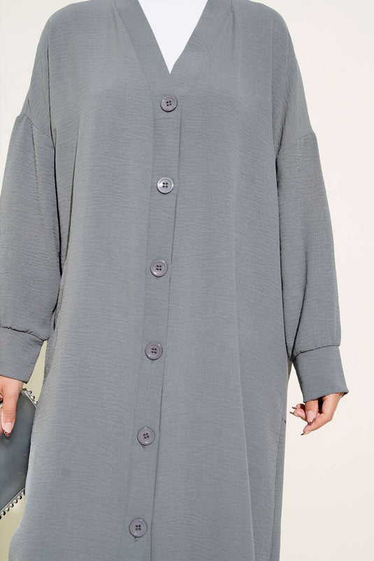 Cardigan long gris Ayrobin avec boutons sur le devant