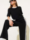 NameEnsemble deux pièces ottoman noir à rayures et manches courtes
