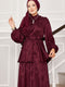 Costume deux pièces en jacquard avec ceinture amovible et taille froncée, bordeaux