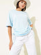 T-shirt bleu ciel avec cordons de serrage sur les côtés