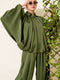 Costume deux pièces ample en satin à manches chauve-souris kaki