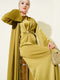 Bel Büzgü Detaylı Saten Abiye Elbise Yağ Yeşili
