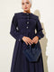 Bebe Yaka Düğme Fiyonklu Elbise Lacivert