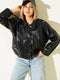 Deri Çıtçıtlı Fermuarlı Ceket Siyah