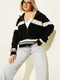 Yatay Şerit Çizgili Triko Kısa Hırka Siyah