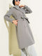 Boydan Düğmeli Kruvaze Yaka Kaşe Kaban Gri