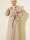 Düğmeli Kuşak Detaylı Kaşe Kaban Bej