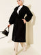 Kruvaze Yaka Balon Kol Kuşaklı Kaşe Kaban Siyah