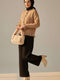 Fırfırlı İnci Düğmeli Triko Hırka Latte