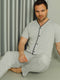 Boydan Düğmeli Kısa Kol Erkek Pijama Takım Gri