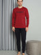 Önü Baskılı Paça Lastikli Erkek Pijama Takım Bordo