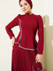 Taş Detaylı Pileli Etekli İkili Takım Bordo