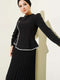 Taş Detaylı Pileli Etekli İkili Takım Siyah