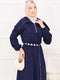 NameŞal Yaka Beli Büzgülü Zincir Kemerli Tesettür Elbise Lacivert