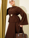 Gold Aksesuarlı Fitilli Etekli İkili Takım Kahve