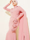 Gül Detaylı Pelerinli Abiye Elbise Pudra