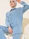 Önü Taşlı Kot Gömlek Takım Buz Mavi