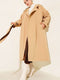 Çıtçıt Düğmeli Deri Detaylı Trençkot Latte