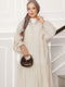 Önü Yarım Düğmeli Kat Kat Elbise Bej