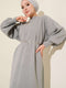 Balon Kol Triko Elbise Kayrak Grisi