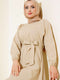 Bel Lastikli Elbise Bej