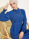 Kol Piliseli Elbise Koyu Mavi