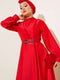 Önü Çapraz Piliseli Saten Elbise Kırmızı
