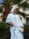 Yarım Düğmeli Püskül Detaylı Tesettür Elbise Mavi