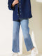 Lazer Kesim Bol Paça Pantolon Orta Mavi Kar