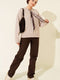 Yaka Fularlı Triko Kazak Bej