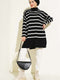 Fitilli Çizgili Salaş Triko Tunik Siyah