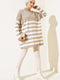 Yarım Boğazlı Çizgili Salaş Triko Tunik Vizon