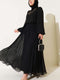 Bel Lastikli Pileli Şifon Elbise Siyah