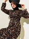 Bel Lastikli Leopar Desen Bürümcük Elbise Leopar