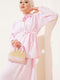 Gizli Düğmeli Kuşaklı Etekli İkili Takım Pembe