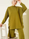 Bisiklet Yaka Yanları Metal Düğmeli İkili Takım Yağ Yeşili