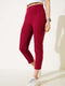 Çımalı Bel Fermuarlı Pantolon Bordo