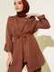 Beli İpli Keten Üçlü Takım Kahve