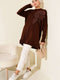 Büyük Çiçek Desenli Triko Tunik Kahve