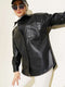 Göğüs Cepli Çıtçıt Düğmeli Deri Gömlek Siyah