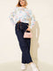 Gül Desenli Triko Kazak Mavi