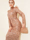 Omuzları Tüylü Pul Payet Abiye Elbise Bakır