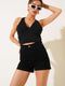 V Yaka Boyundan Bağlamalı Bluz Siyah