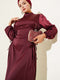 Yanları İp Bağcık Detaylı Saten Elbise Bordo