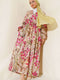 Yarasa Kol Çiçek Desenli Elbise Bej