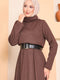 Balıkçı Yaka Beli Büzgülü Tesettür Elbise Kahve